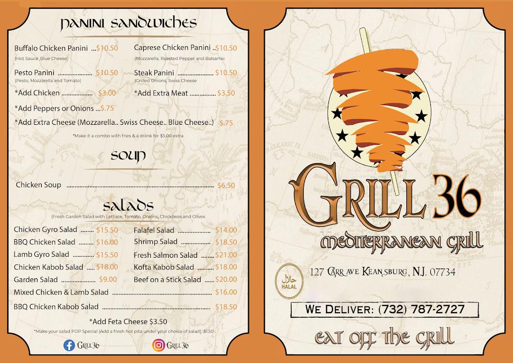 Welcome to Grill 36, your go-to Mediterranean takeout restaurant located at 127 Carr Ave, Keansburg, NJ. We specialize in delivering fresh, traditional dishes that cater to every palate, including vegetarian and vegan options. With a fast-service approach, we’re popular for lunch, dinner, and solo dining experiences. Enjoy our cozy, relaxed atmosphere while you savor our flavorful offerings or take advantage of our convenient takeout and contactless delivery services. With accessible seating and restroom facilities, everyone is welcome. Whether you're dining in or on the go, Grill 36 is here to serve delicious meals that delight!